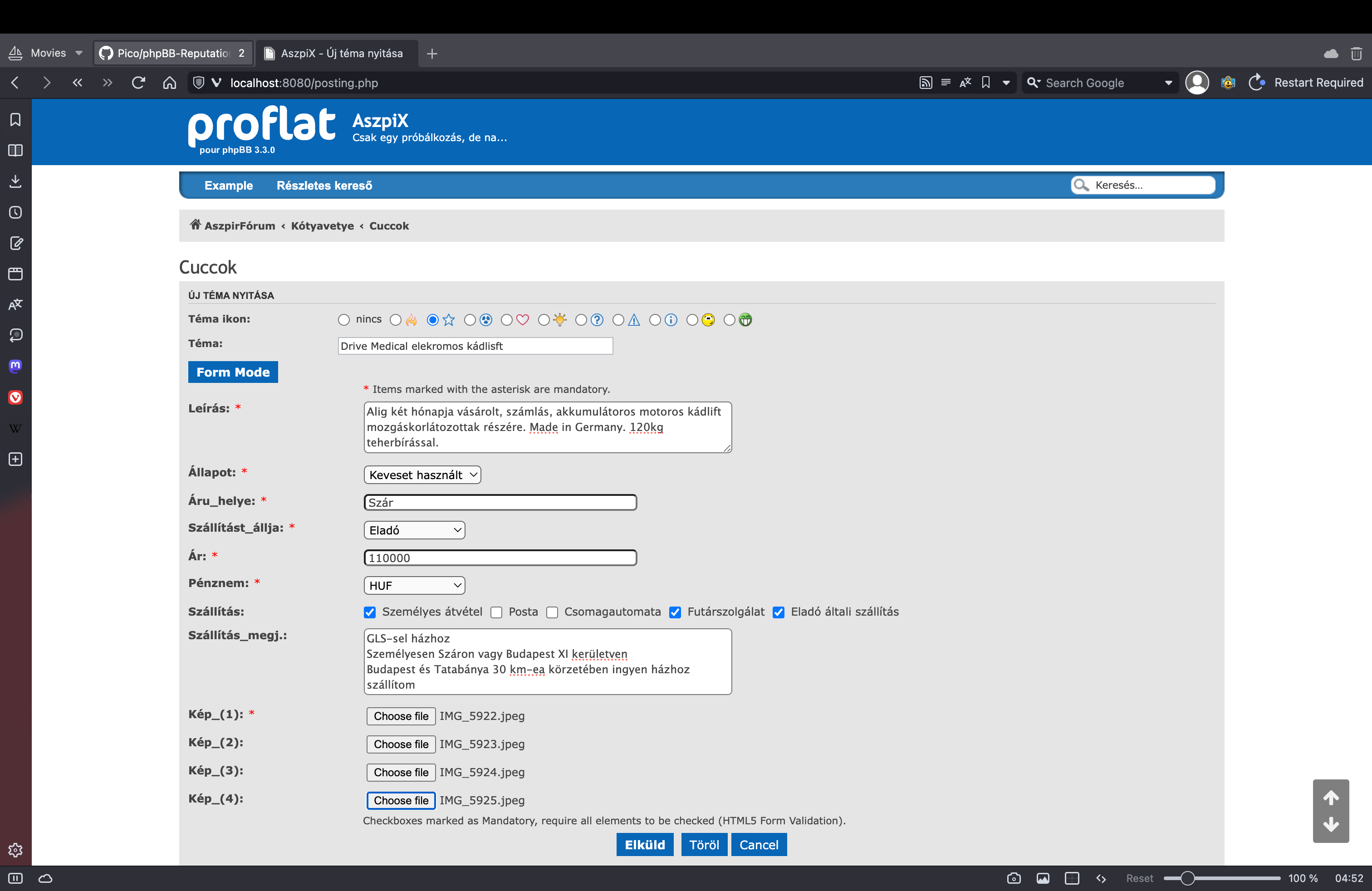 Majd így fog kinézzi ki a topik, amikor már fel lett adva a hirdetés: