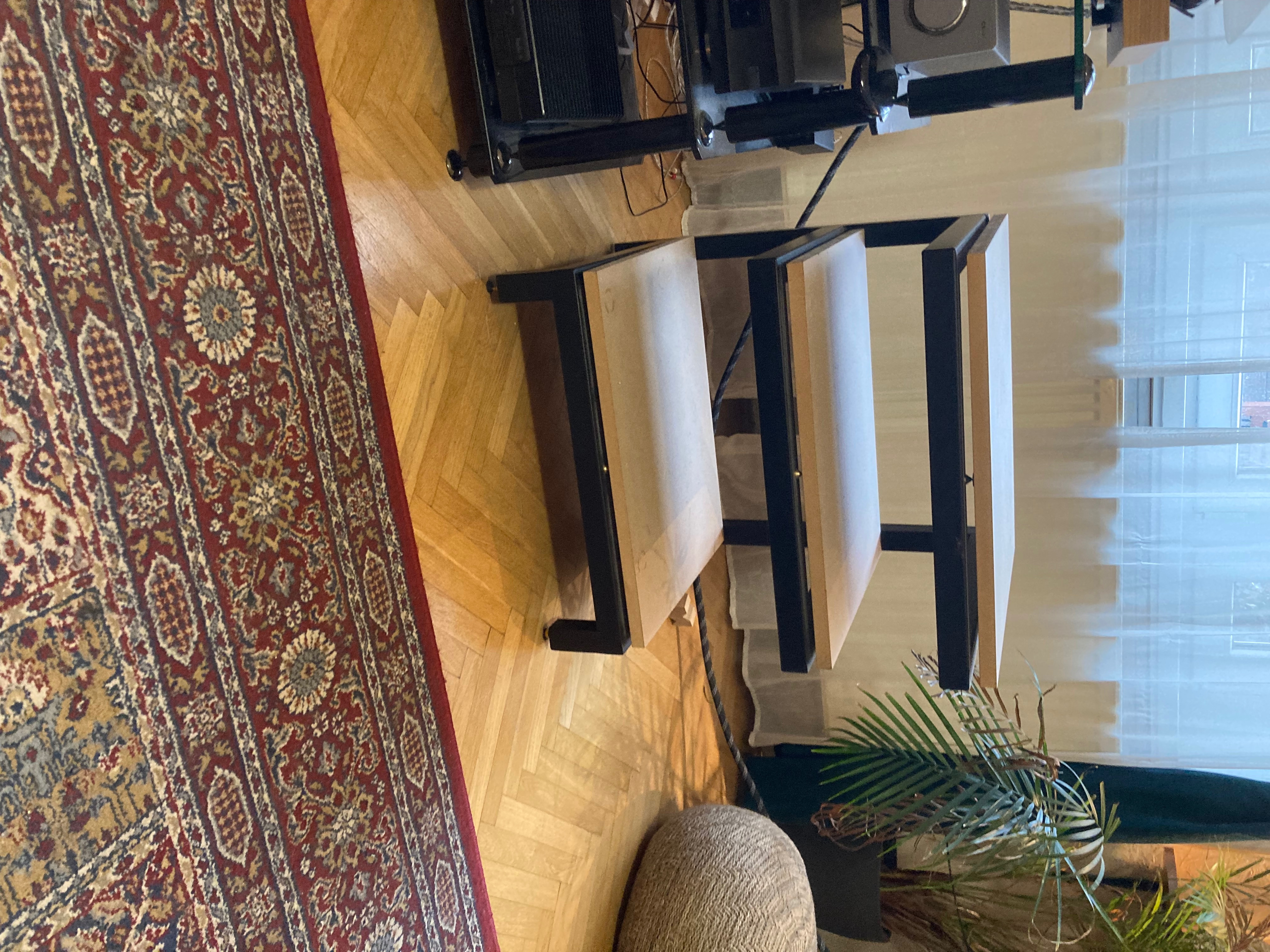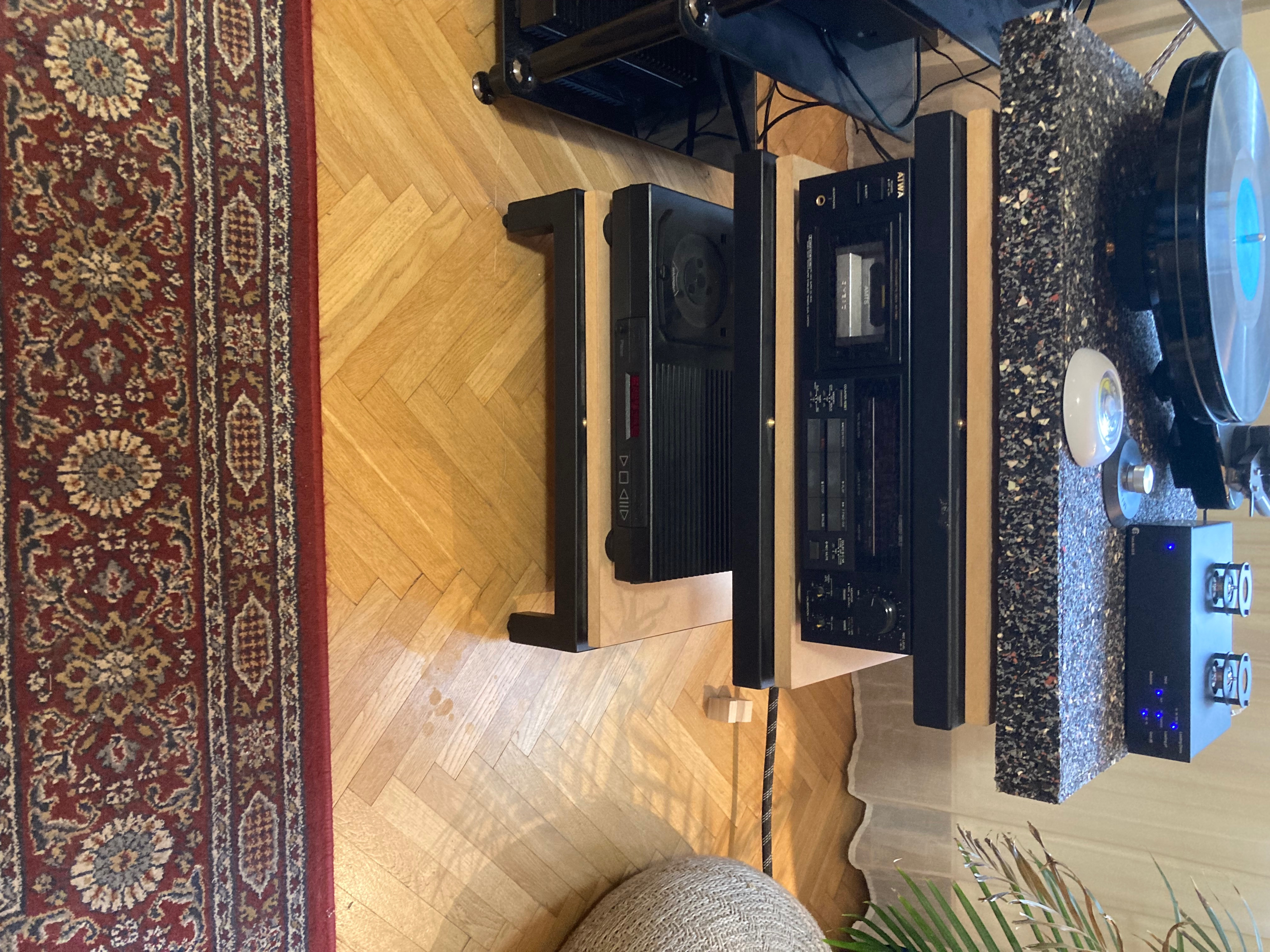 Voltak az én állványaim is 2 évig. Szemből kifejezettem kellemes parallaxist ad a komponenseknek a dőlés, egyáltalán nem zavaró. A Belseje anno homokkal volt töltve, masszív, nem rezonáló szerkezet. Nyilván lemezjátszó alá nem a legjobb választás, a lapok amúgy is 3 ponton vannak tüskéken.
