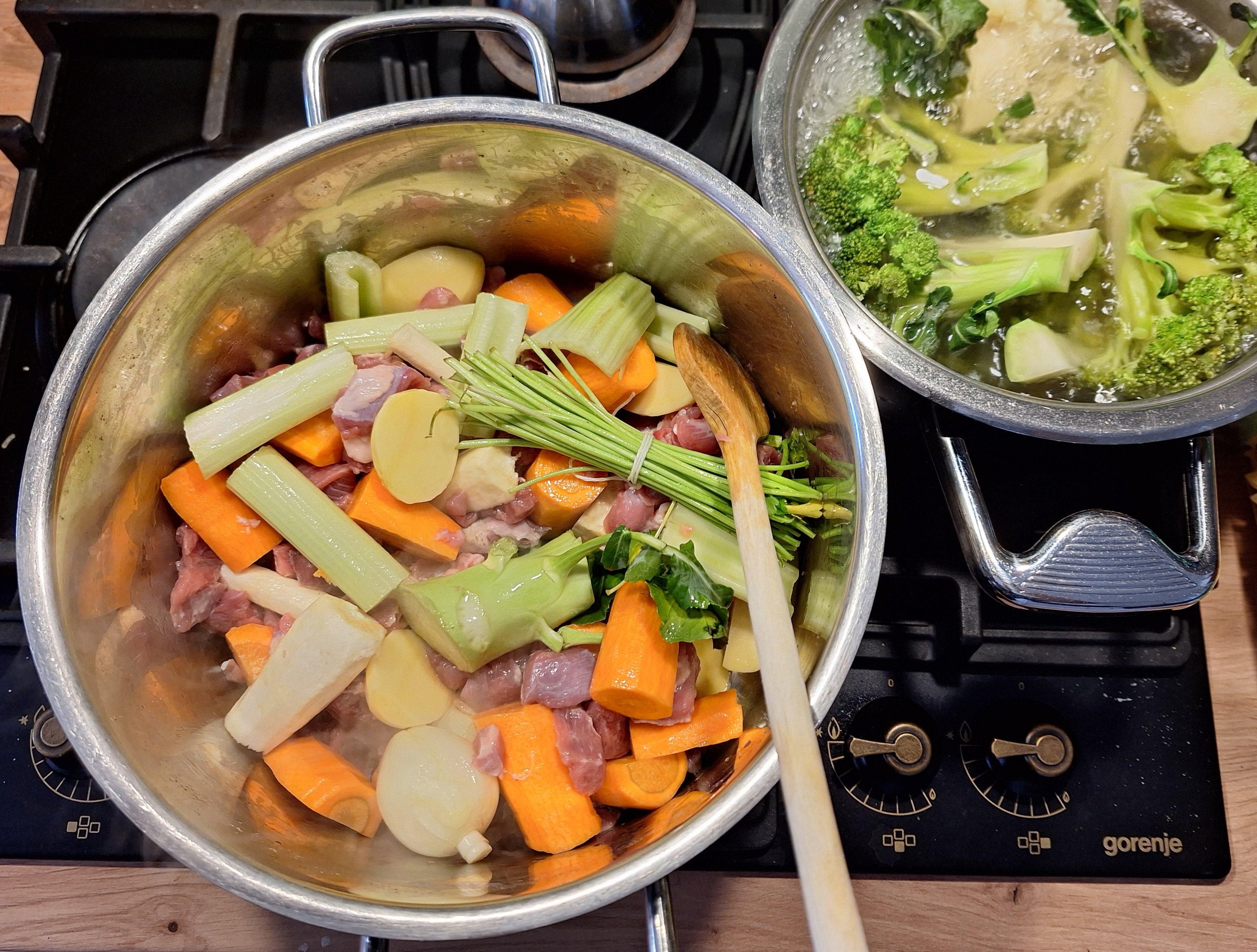 Egy kis maradék frankurti leves, hozzá rakott krumpli.