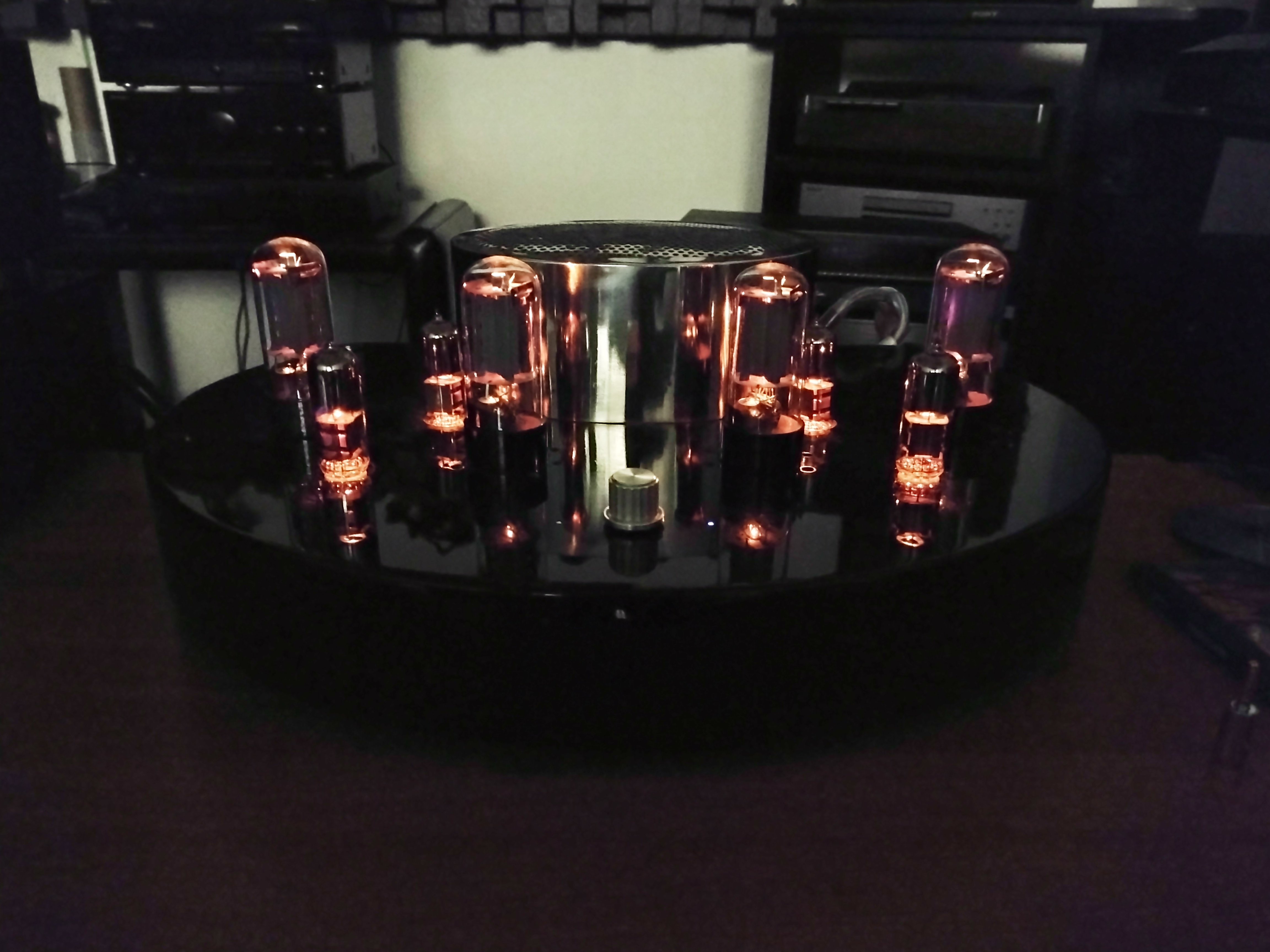 Végre evittem egy csöves hozzáértő barátomhoz Pestre ahogy azt már régebben írtam, hogy így fogok tenni..., tehát nem EL 34 csövek vannak benne hanem 6L6GC csövek, jelenleg SOVTEK, és a teljesítménye 12 Watt, nem búg a trafó, Emanation kábelezés van benne biztosan...