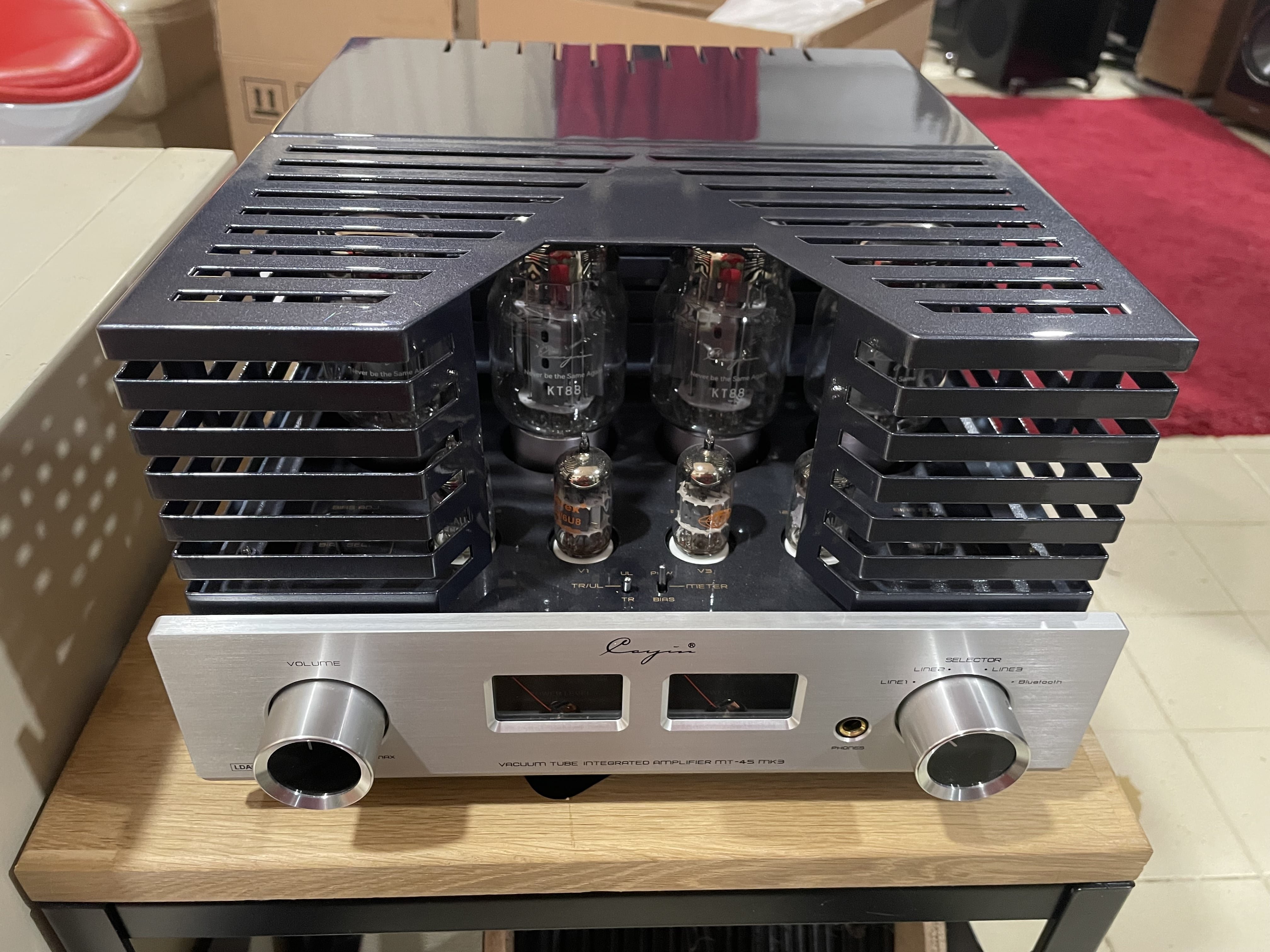 Eladó egy bizományos Cayin Mt-45MK3 csöves erősítő, saját dobozában, karcmentes állapotban, tartozékaival. 2x40 Wattos (ultralinear üzemmódban) vagy 2x20 Wattos (Trióda üzemmódban) KT88 Push-Pull kapcsolástechnika, távvezérlővel.