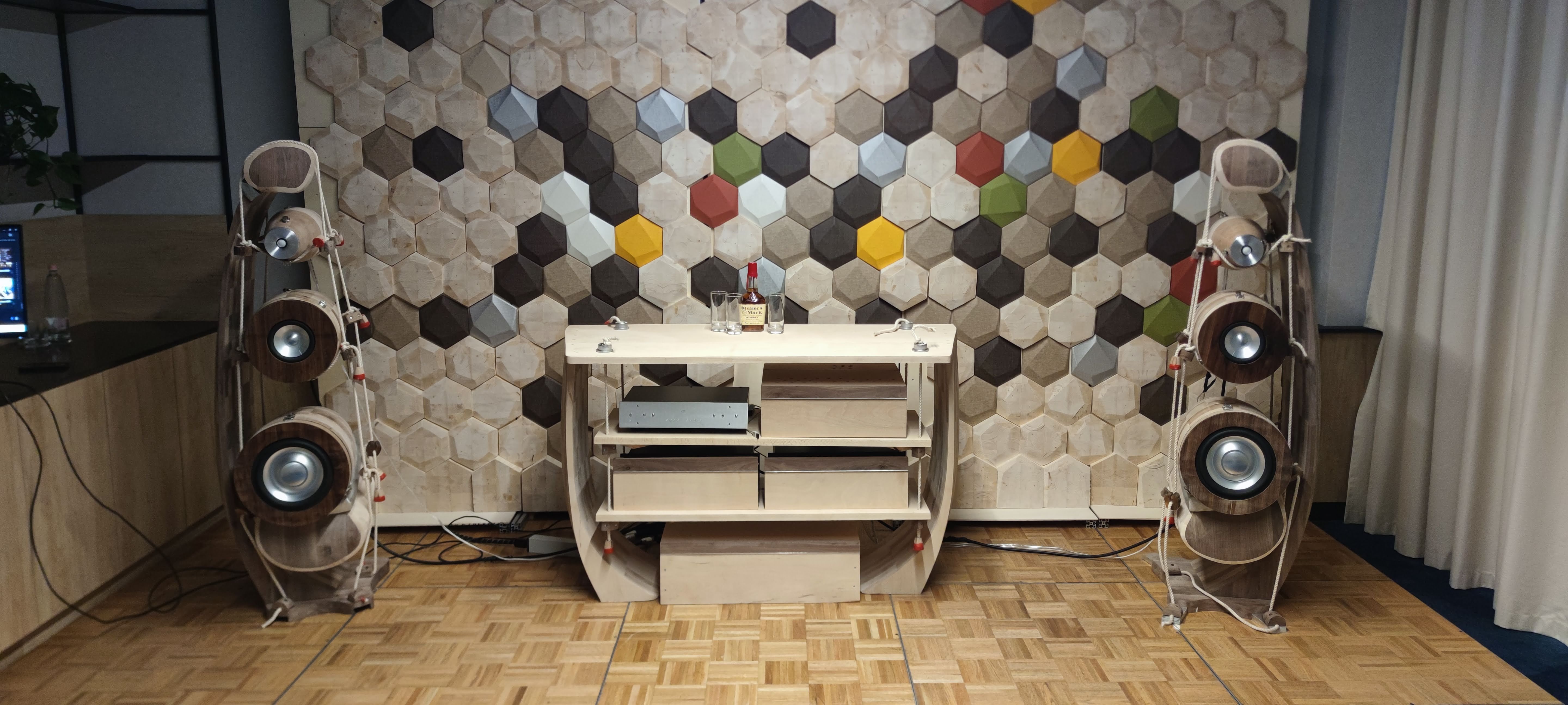 Bodor-Audio hangfala érdekes volt, sajnos közelebbről megnézve nekem nagyon úgy tűnt, mint ami még nincs kész. (felületkezelés, felületek minősége stb) maradjunk annyiba jól állt neki a távolság.