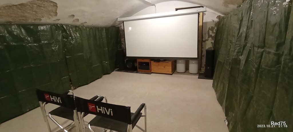 Nos, annyi történt, hogy lassan berendeződött a pince. Lett egy 105"-os motoros vászon, ide került az Anthem MRX510, Quadral Rhodium hangsugárzó szett, Himedia Q10 Pro médialejátszó, Benq W1090 vetítő. 2db moziszék és lett beszerelve egy klíma fűtés gyanánt.