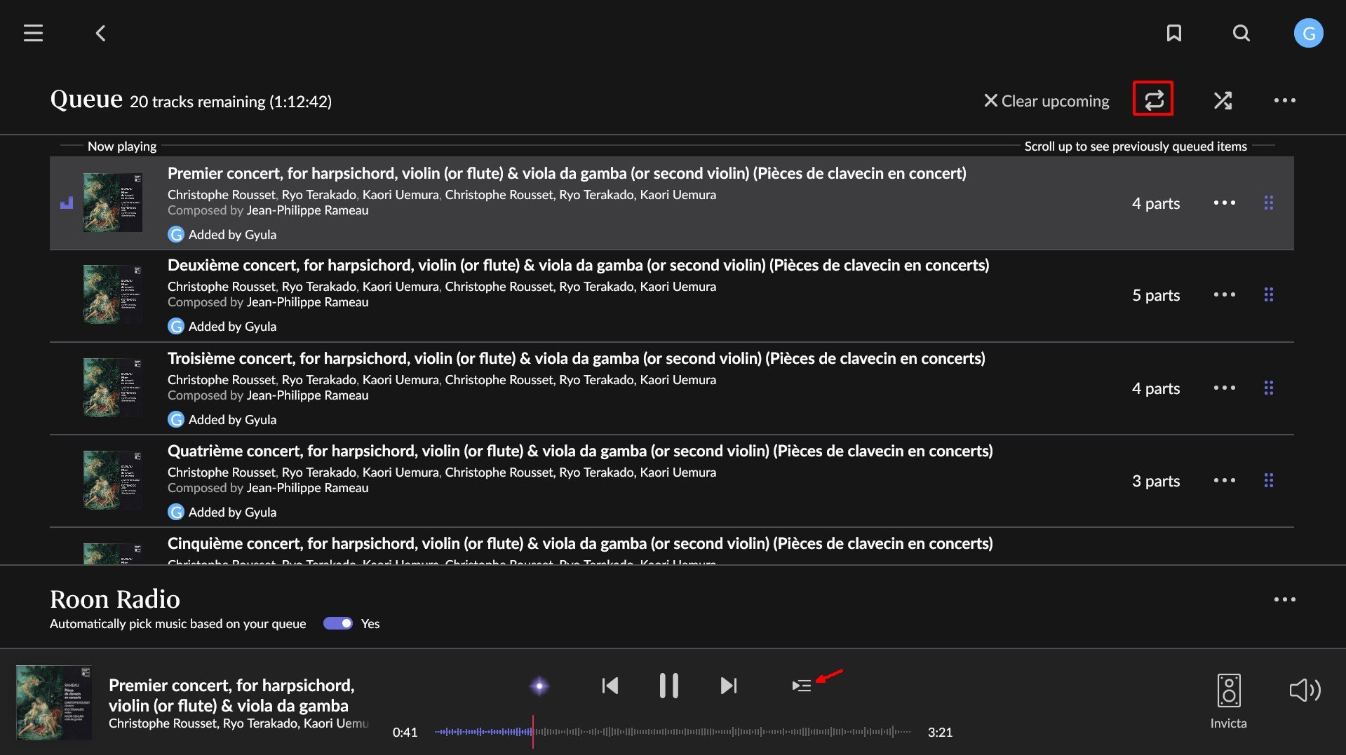 Hogyan lehetne rábeszélni a roon-t, hogy egy album lejátszása után ne kezdje el ismételni ugyanezt az albumot, hanem jól nevelt módon, az utolsó szám után szépen megálljon?