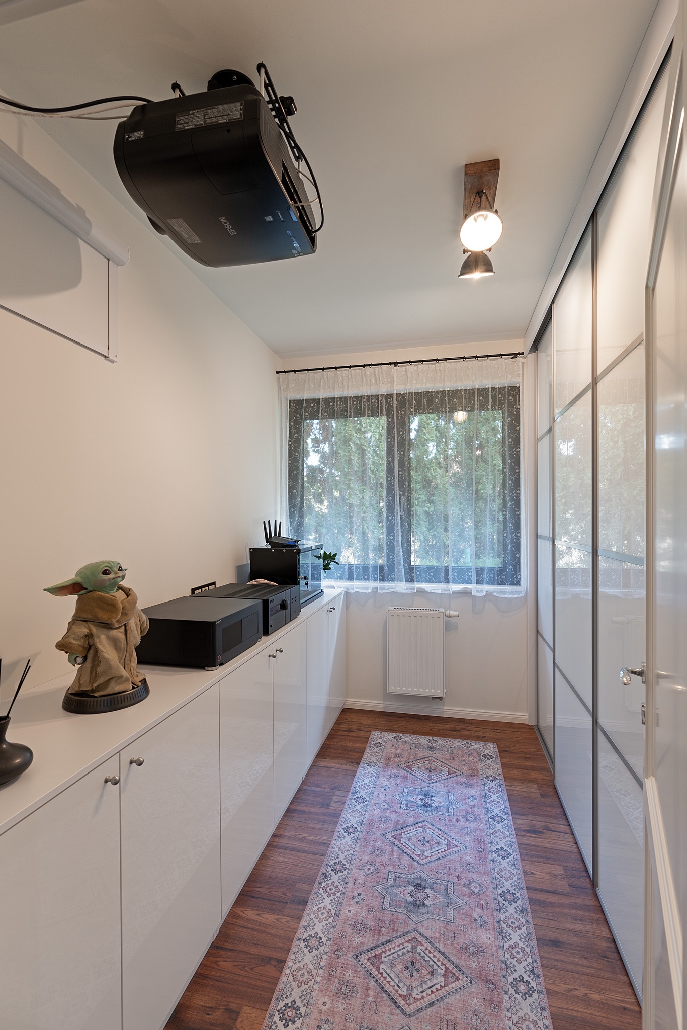 A másik dolog a technikai helyiség. Ez a szomszédos gardróbszobában lett kialakítva.