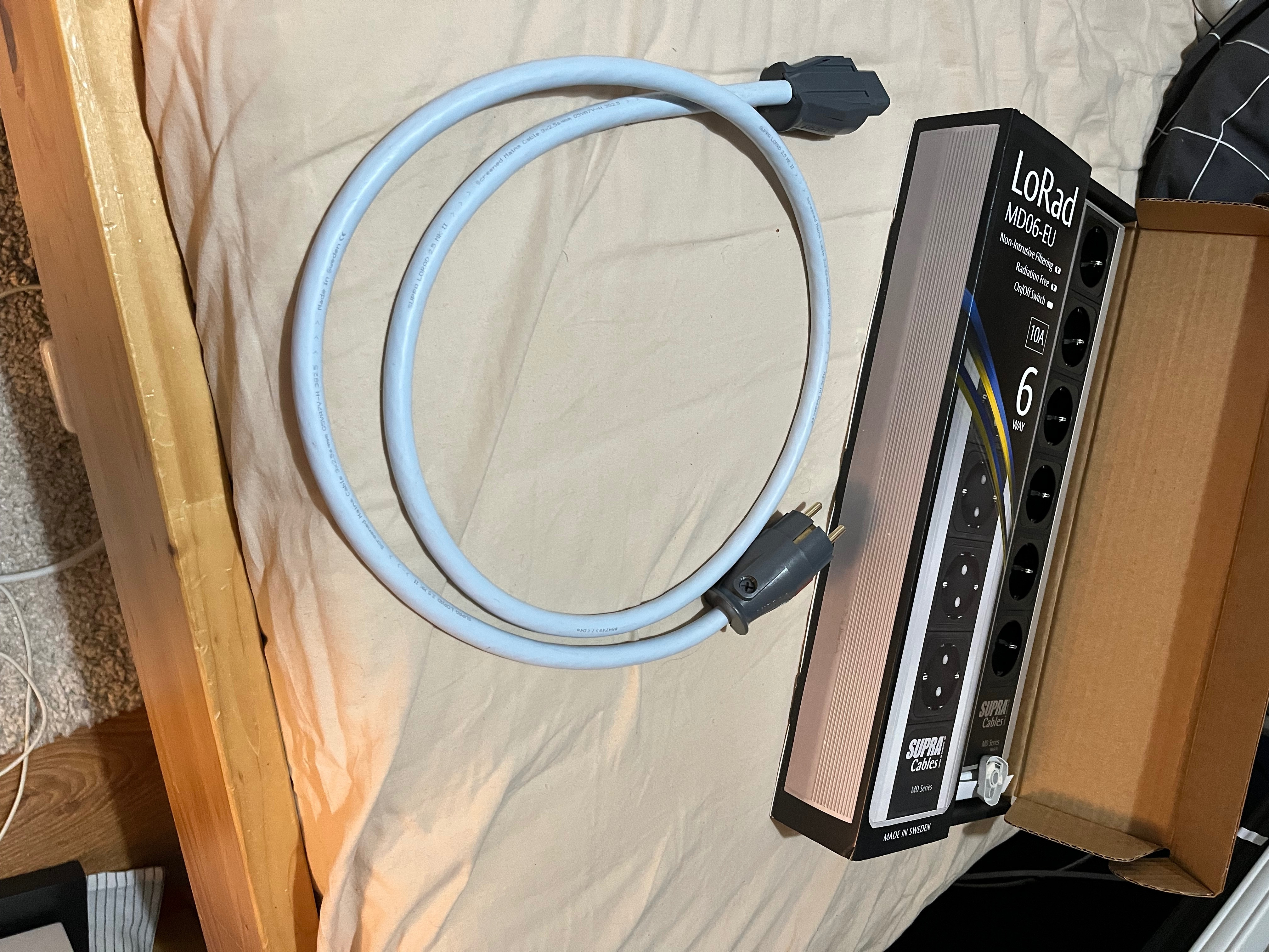 Eladóak fent nevezett elosztó-tápkábel páros. Az elosztó dobozos, szép, de az utolsó dugaljból kiesett a biztonsági bigyó, meg ki van támasztva, de működik. Supra Lorad 2.5 tápkábel 1.5méteres. Áruk együtt 55000Ft. Budapesten vehető át.