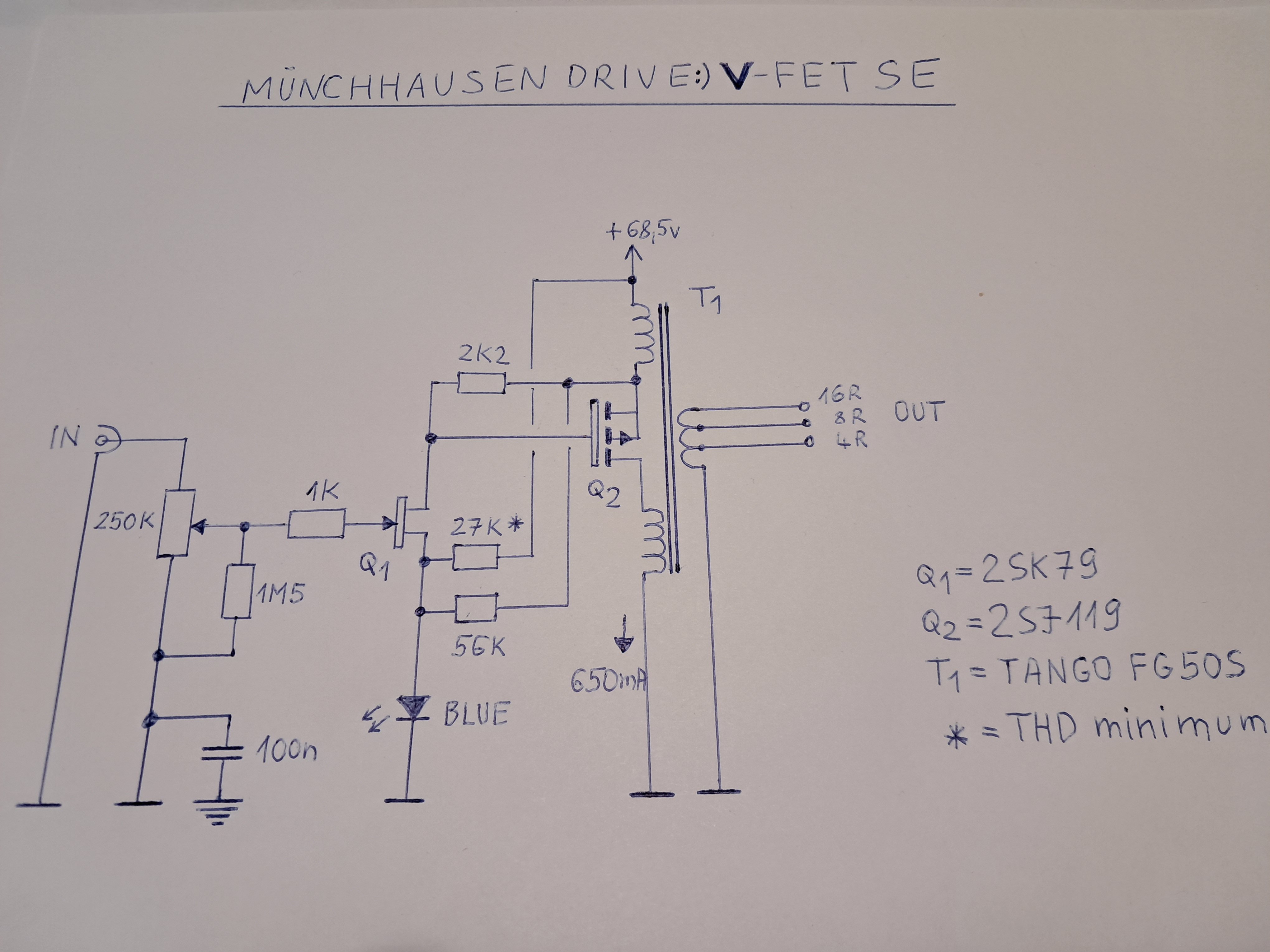 A Münchhausen drive:) V-FET SE kapcsolási rajzát felteszem, amelyen az alapötlethez képest több változtatás is van.
