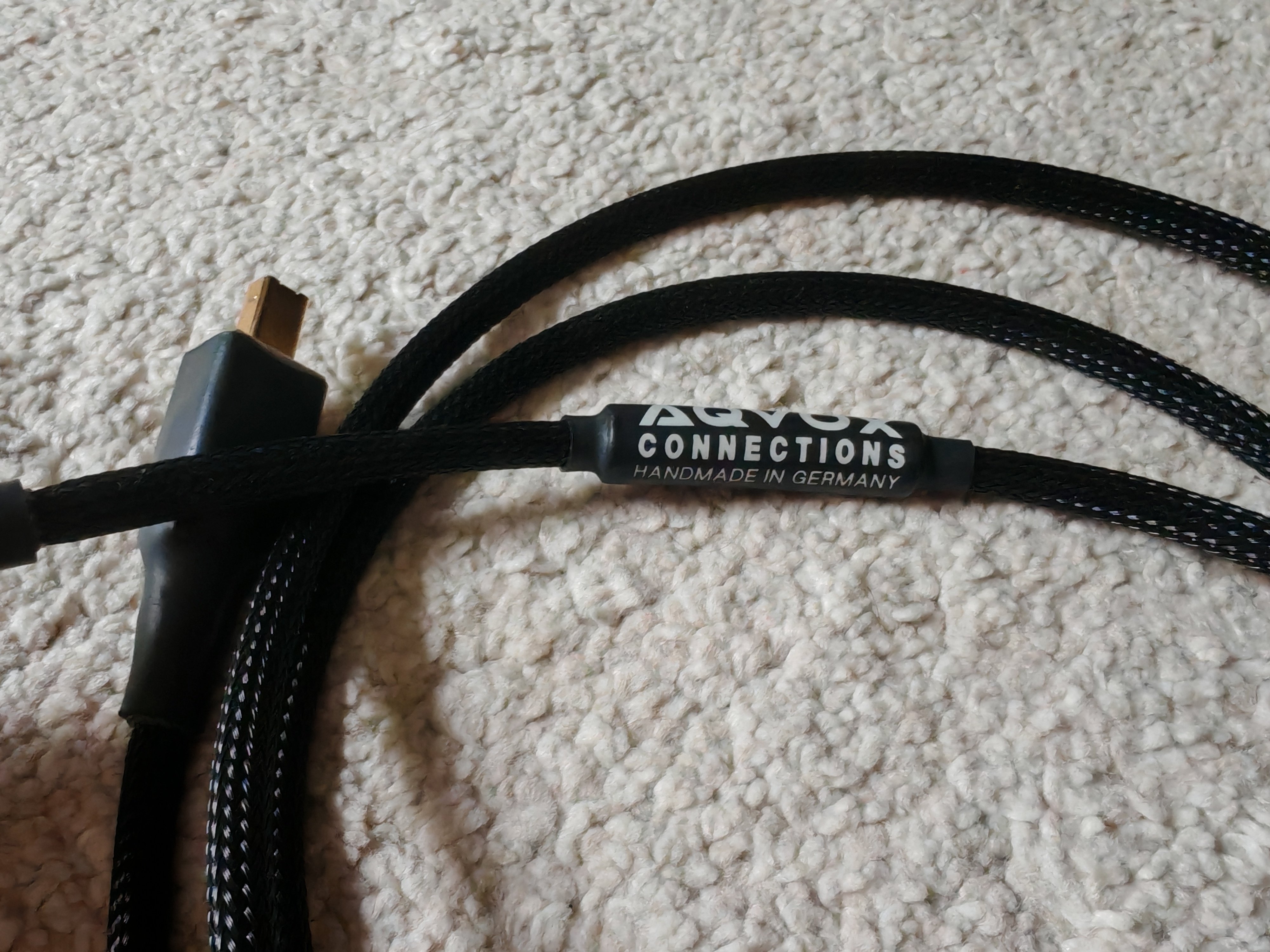 AQVOX audiora optimalizált Német prémium USB A-B kábel 1,7m. Anno Svájci vásárlás volt. Ritkán bukkan fel hazánkban. Nagyon jó hangú kábel. Talán a kiegyensúlyozott a legjobb szó rá, a teljes frekvencia tartományban tiszta, dinamikus, nem bántó. A gyártó oldaláról néhány infó: