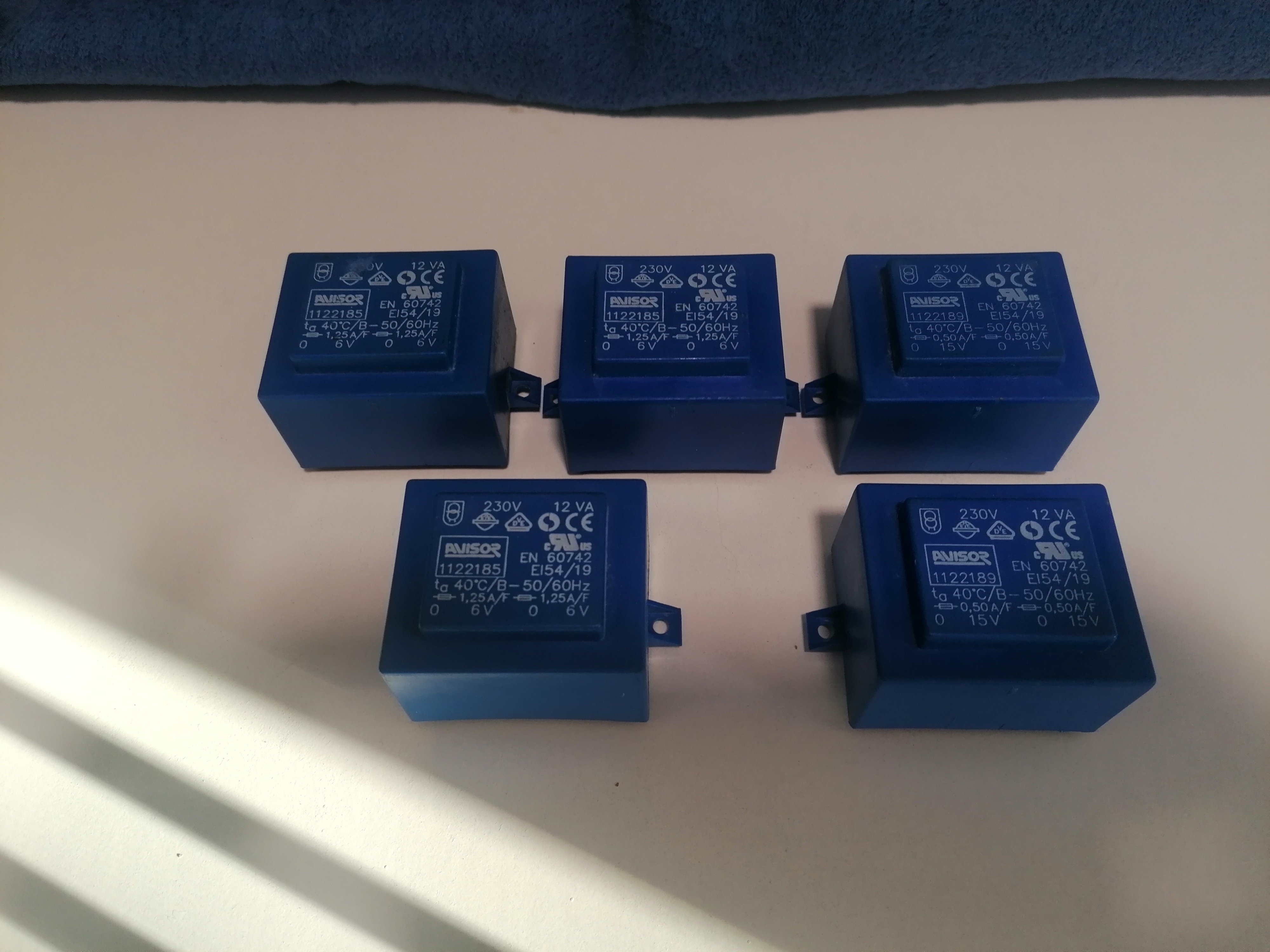 - 2.db 230V primer, szekunder 2 X 15V teljesítmény: 12VA