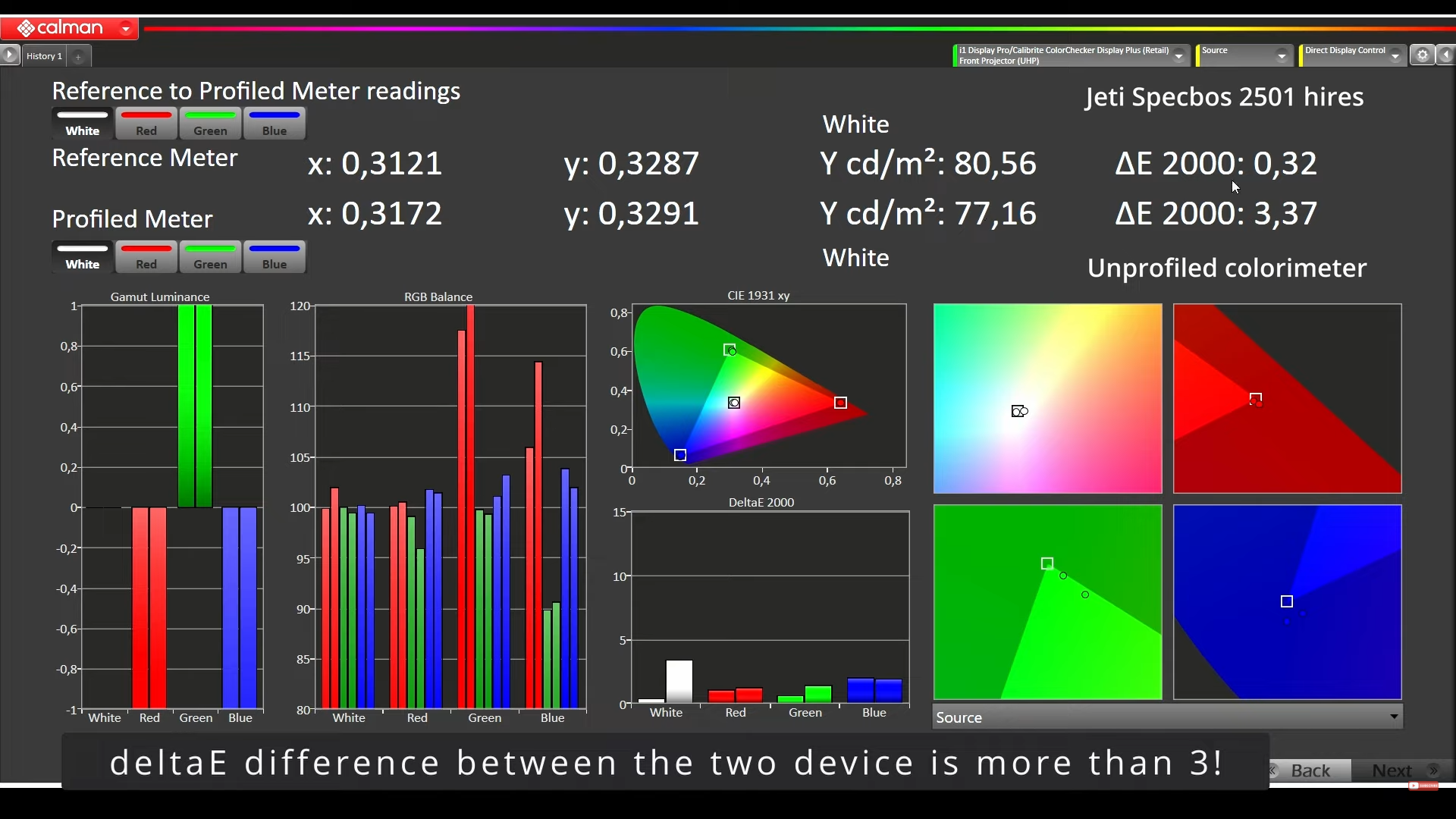 Fontos megjegyezni, hogy mindkét csomagban használok colorimetert, amit spectroradiometerrel profilozok és hozzájuk társul még egy bit perfect minta generátor is, ugyanis, ha a 3 műszer közül egy is hiányzik, már nem garantálható a tökéletes színhűség, ez a kalibrálás egyik alapja (madvr esetében nem kell dedikált minta generátor, ott a htpc szolgáltatja a mintákat).